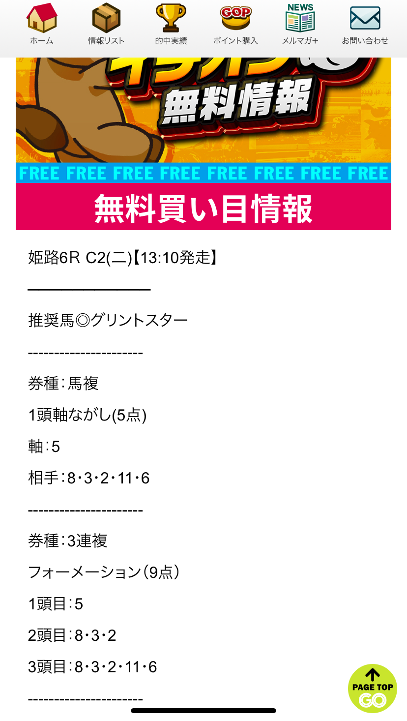 | 的中率 | 回収率 | 無料予想 | 有料予想 | 高配当 |