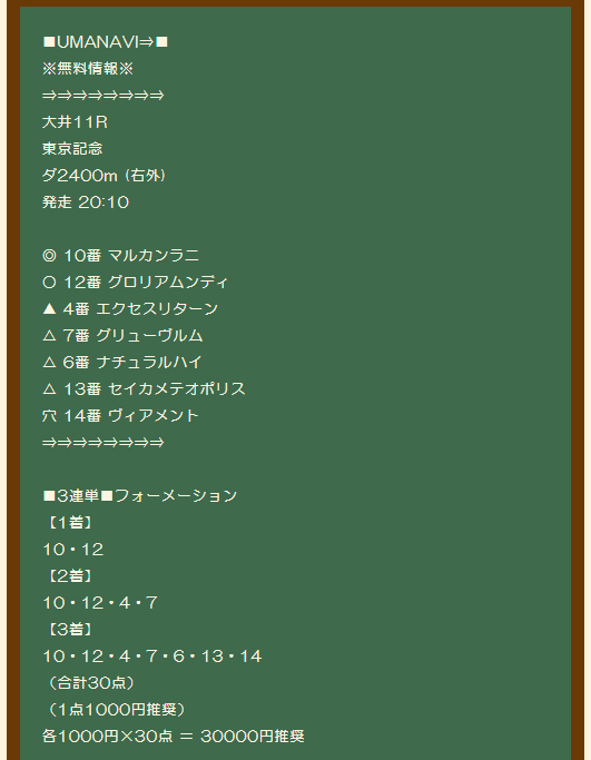 怪物級の実績を持っているので今年も是非帯封的中を無料予想でお願いします!