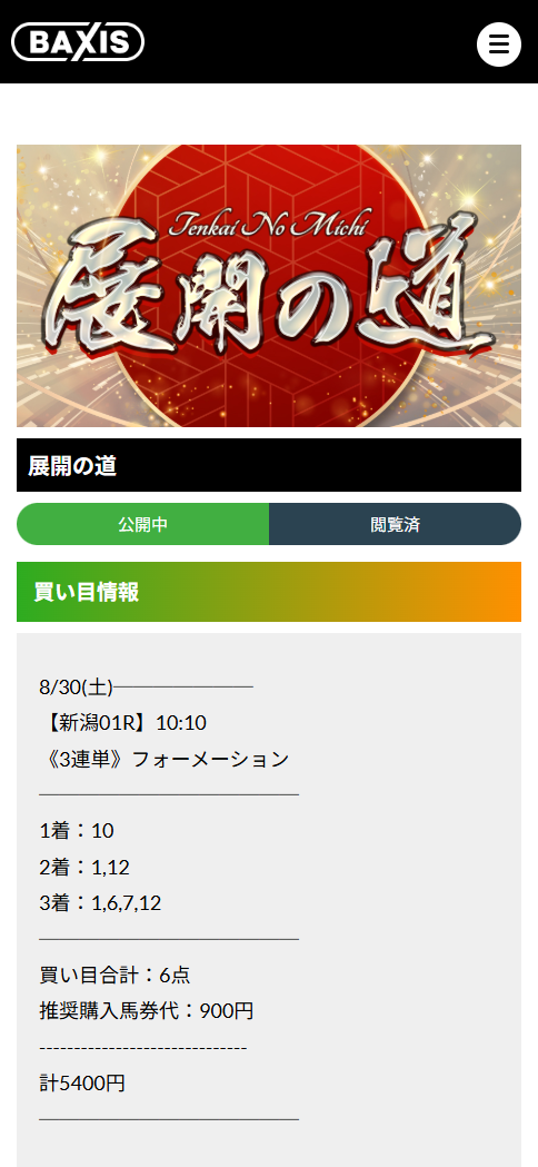 【展開】を予想の軸にしているバクシスの「展開の道」という有料情報を購入してみました。