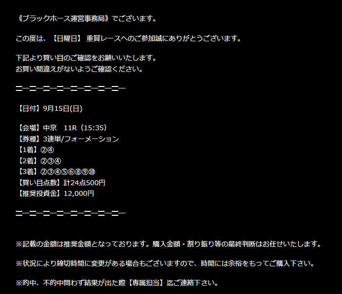 口コミを見ると9月最終開催週の中央競馬無料予想でも的中と