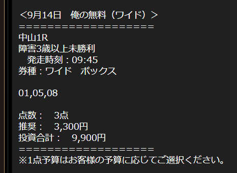 18日(土)の無料予想では買い目点数1点で見事的中!