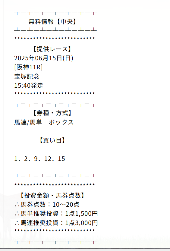 上半期総決算のG1宝塚記念を無料予想で2馬券種的中